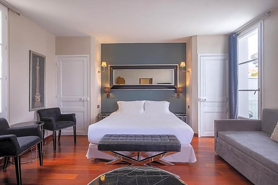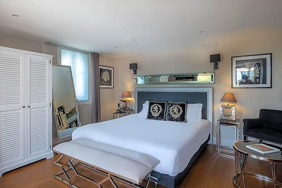 The Suite is a one bedroom suite. It features views of the sea. It offers a private and sheltered balcony overlooking the park and the Mediterranean. This suite has a bathroom with shower and a spa bath with sea views. The master bedroom has a king size bed and separate living room.
